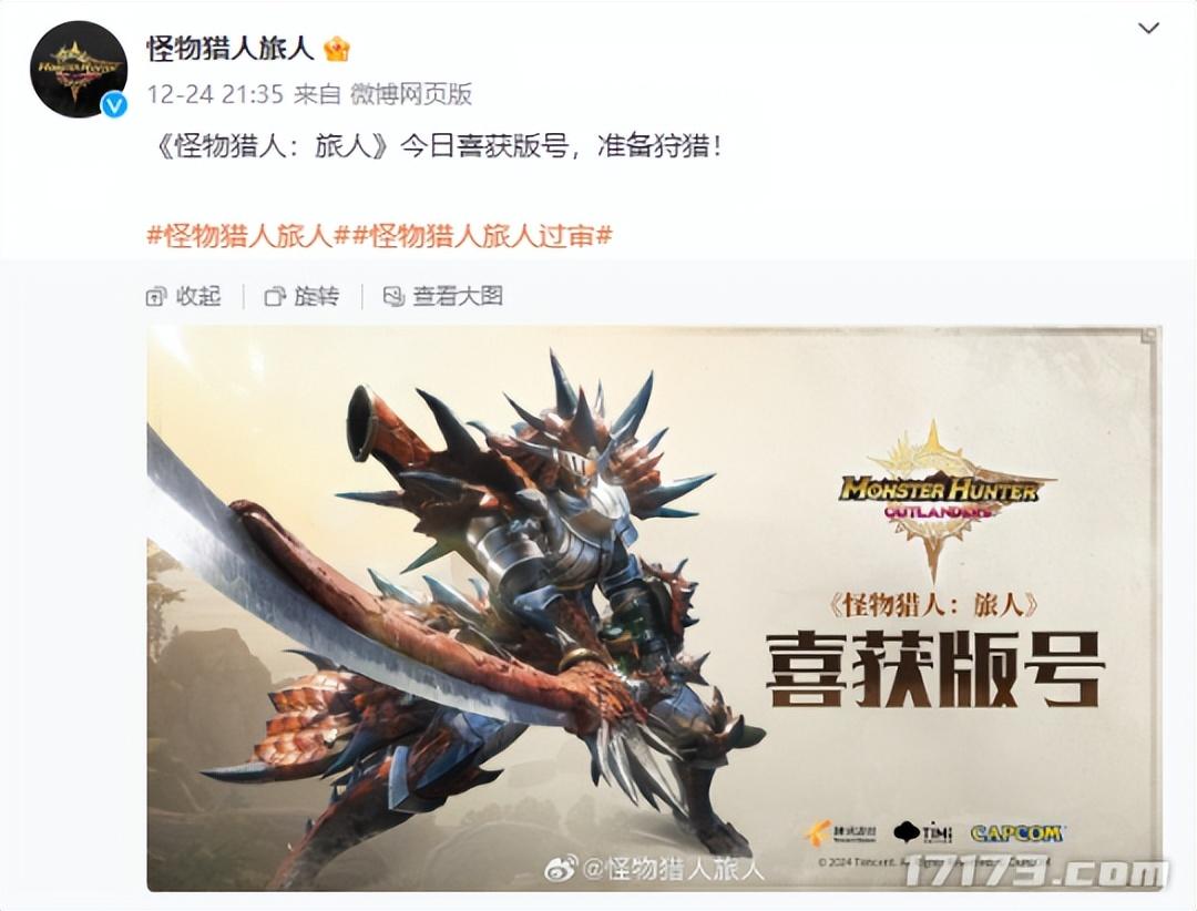 隨後在2024年11月13日《怪物獵人:旅人》正式曝光,公佈了首支預告PV,並上線了遊戲官網和社交平臺賬號。