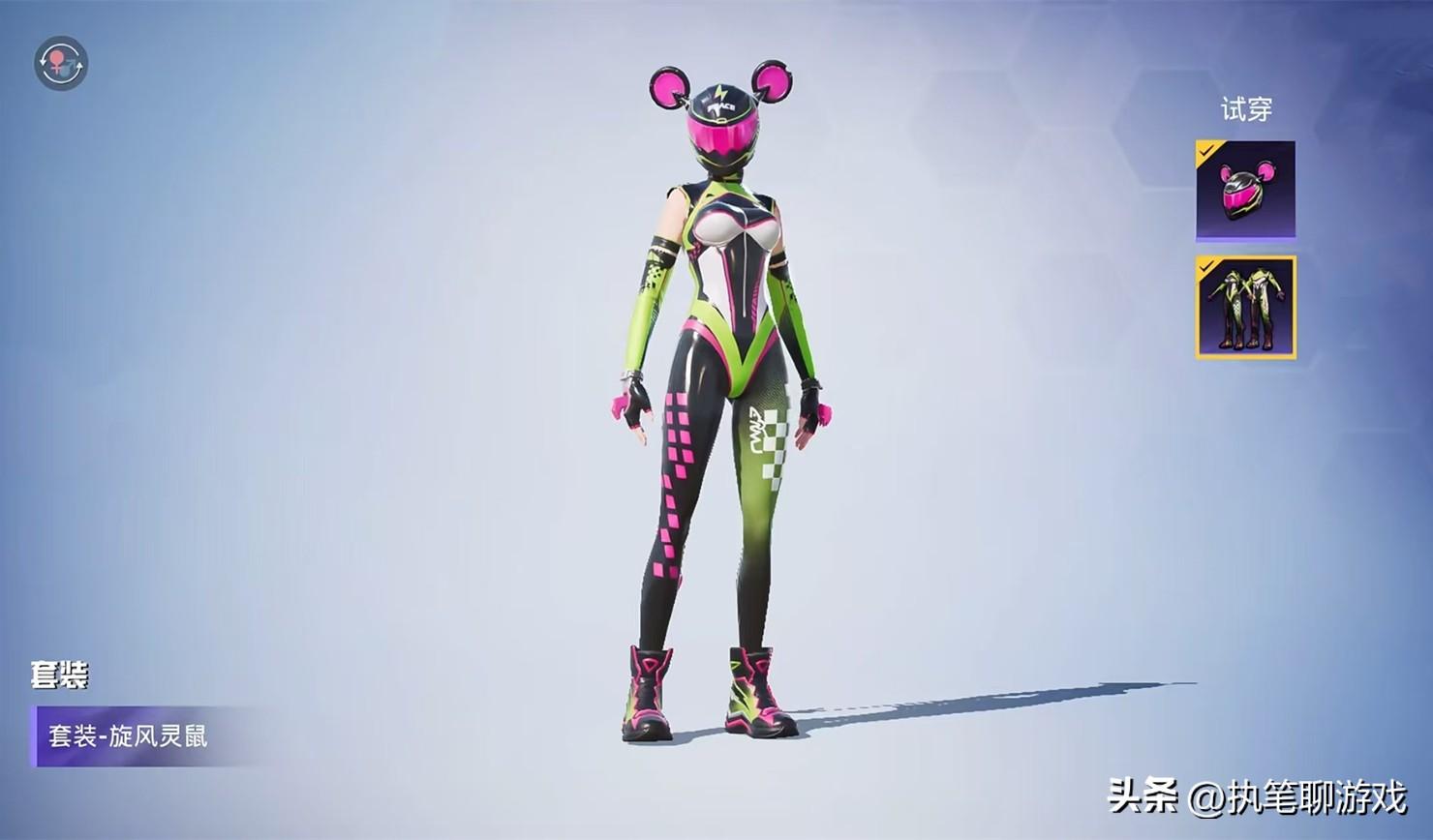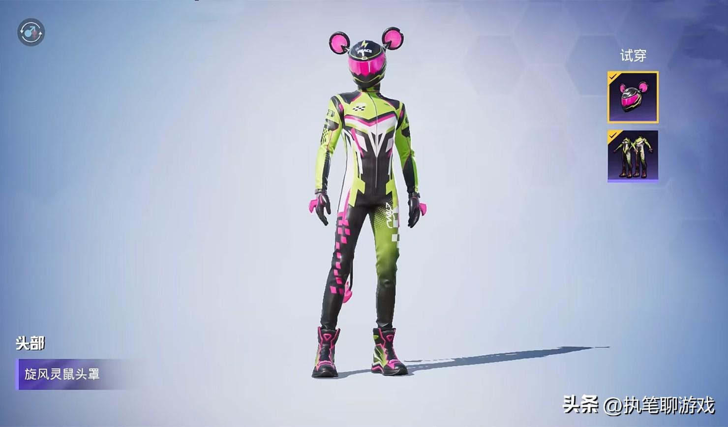 首先來說“旋風靈鼠”,這個套裝的頭盔相當眼熟,而衣服的版型屬於緊身戰鬥服,整體的顏色搭配也是非常熟悉,算得上是舊衣翻新“拼湊款”吧~