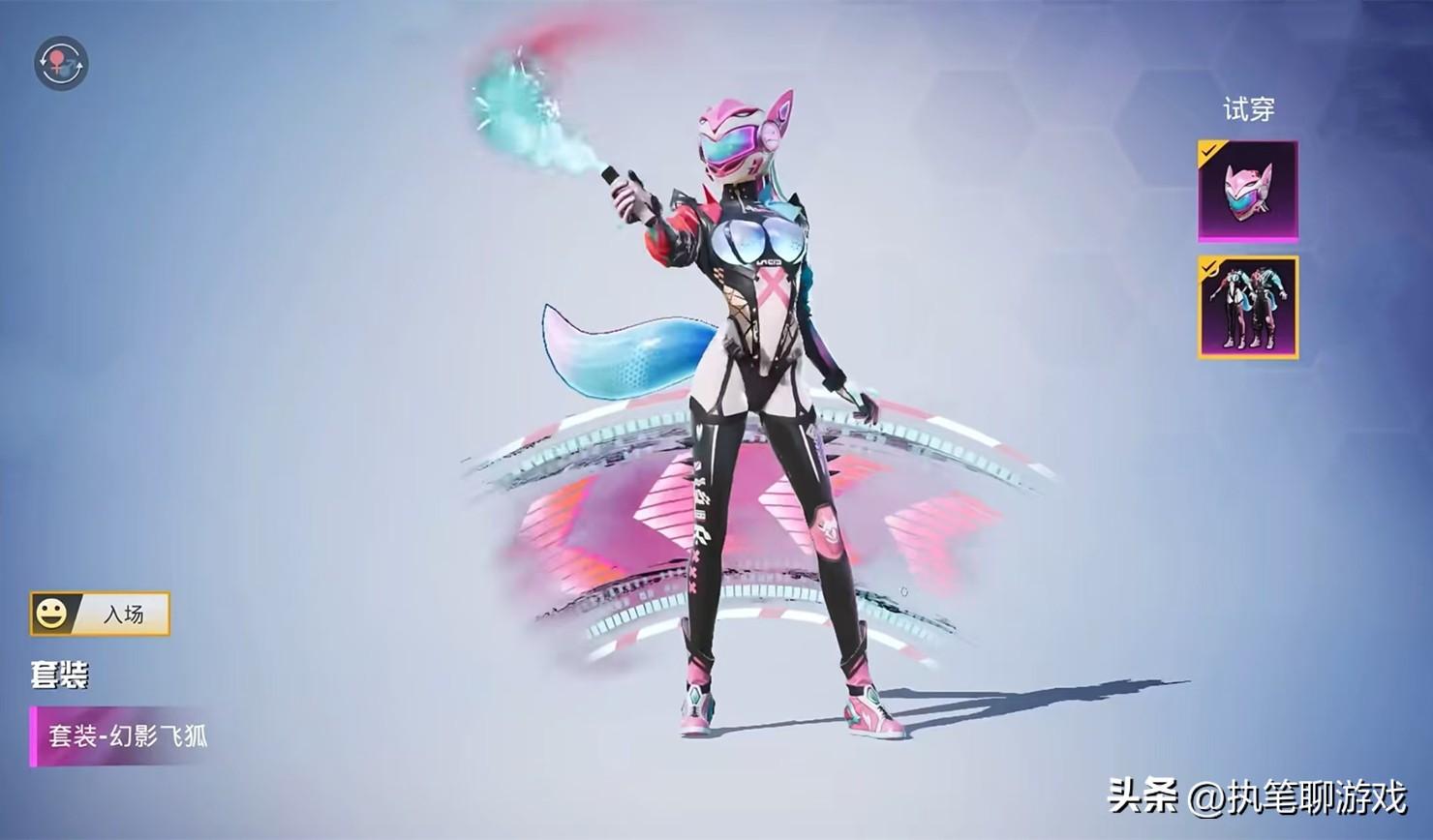 如圖所示,首先我們看到的是C位套裝,被光子命名爲“幻影飛狐”,由特效組成的狐狸尾巴暫且不提,那藍色的“水晶球”又是要搞什麼事情呢?嘿,天哥自己都有點說不下去了,大家自己體會吧,你們懂!