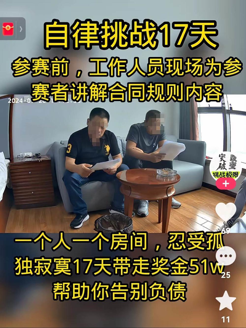 在指定房間,簽署合約,按照合同約定規則,“自律”地生活一定時間,只要在約定時間內不違反規定,即可拿走天價獎金——聽起來是百利而無一害。