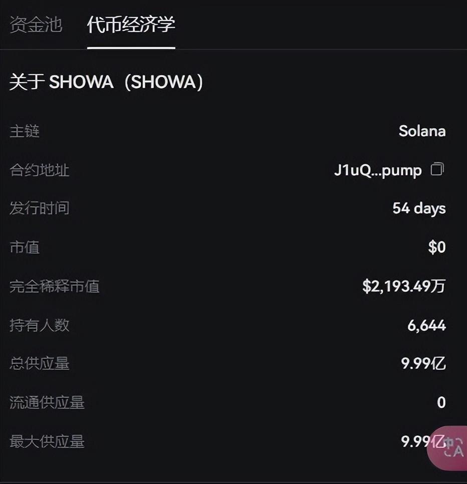 在$SHOWA發佈後,已有6000多名用戶購買了 $SHOWA,該代幣市值一度達到了2000萬美元。