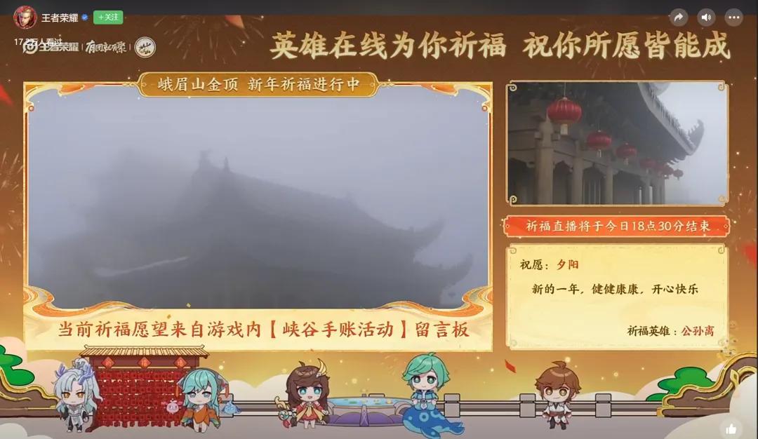 另外一些活動則頗有新意。比如在上海「福梯」偶遇博主送福、策劃爬泰山爲玩家祈福、遊戲直播峨眉山金頂,英雄在線爲玩家祈福等等。