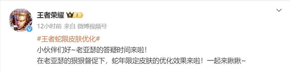 比如官方一直在做遊戲英雄、皮膚的優化重做工作,包括讓玩家投票共創、跟玩家面對面交流體驗意見……這次蛇年限定皮膚、全新傳說皮膚還沒開售,小王就已經根據玩家的建議對皮膚進行了第一波優化——這在其他遊戲中並不常見。