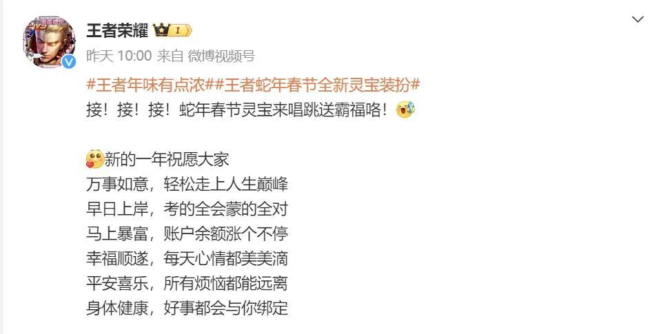 昨天小王公佈了由《王者榮耀》和新華社聯合出品,沈騰、楊冪、艾倫、周深等明星、KOL參演的蛇年賀歲短片——短片陣容豪華,講的卻是王者玩家的普通故事;