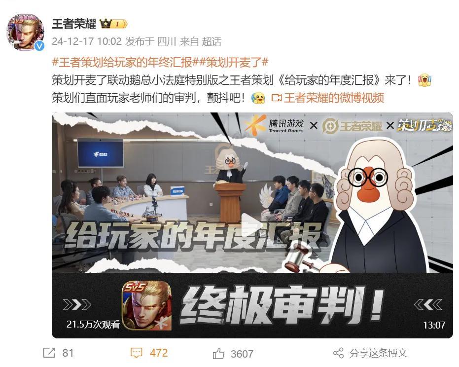 包括文章開頭所說的,小王做了很多跟玩家交流、對齊需求的活動,比如開設策劃開麥了欄目、讓策劃一邊插秧幹農活,一邊回答玩家的問題、跟鵝總小法庭聯動,讓玩家代表審判策劃、官方實時直播直面玩家“拷打”……
