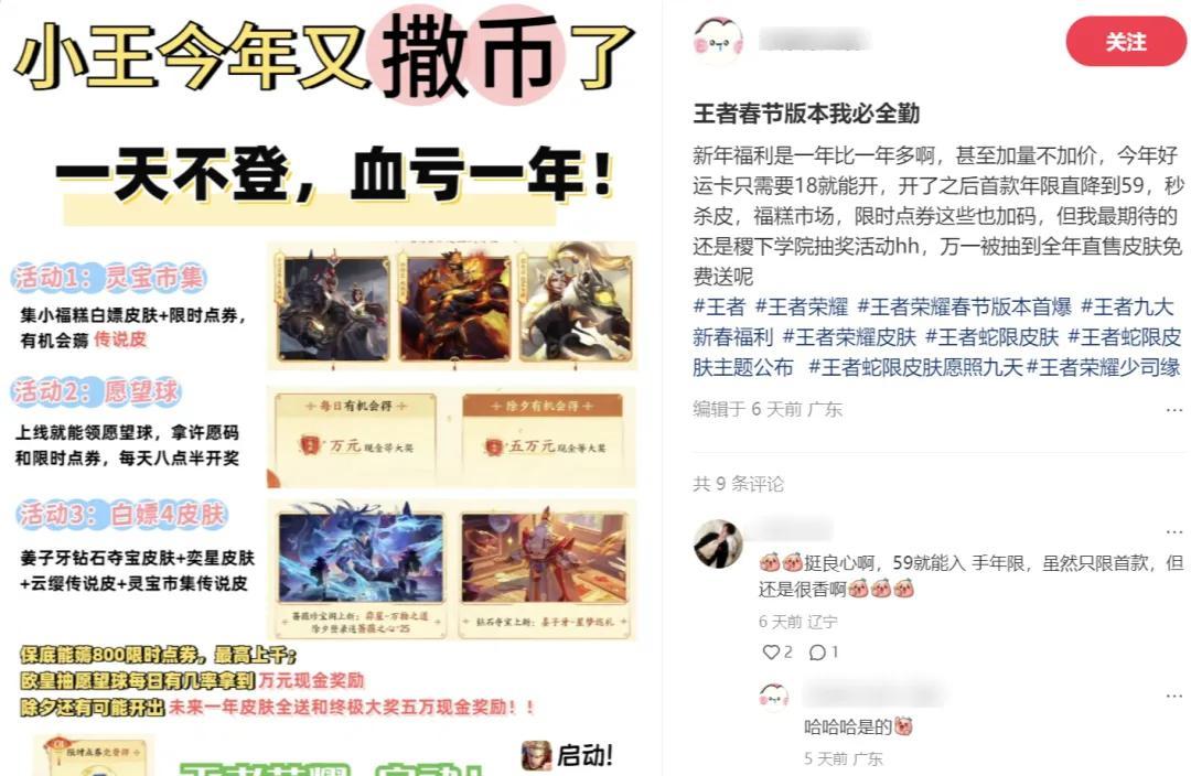 這些也不是矯情,相信大家能從最近《王者榮耀》新春福利活動的轟炸中,感受到小王的這種強烈願望。