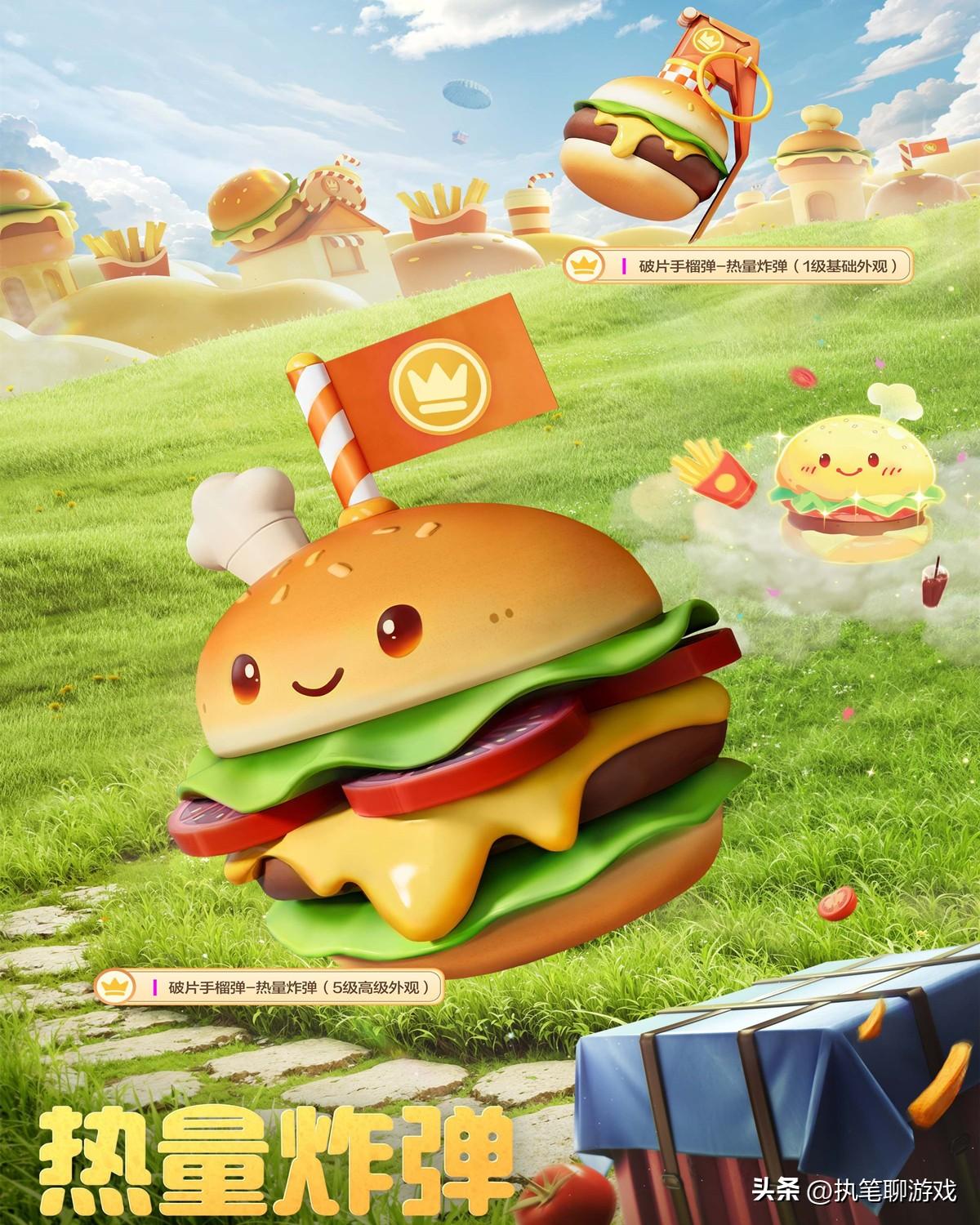 在這周6的0點,遊戲中將會迎來一個名爲“熱量炸彈”的7級碎片手雷新皮膚,天哥稱其爲“漢堡包”!
