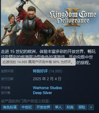 本週2月4日,經典中世紀劍聖模擬器《天國拯救》系列第二部作品《天國:拯救2》正式發售,遊戲一經發售遍迅速登頂Steam暢銷榜首,也收穫了90%的特別好評,可謂是銷量口碑雙豐收。