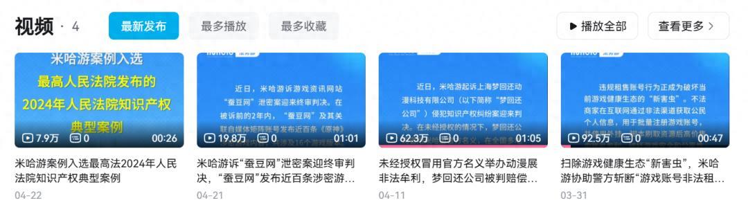 細看米哈遊法務部發布的消息,基本都代表着米哈遊近年來維權的典型案例: