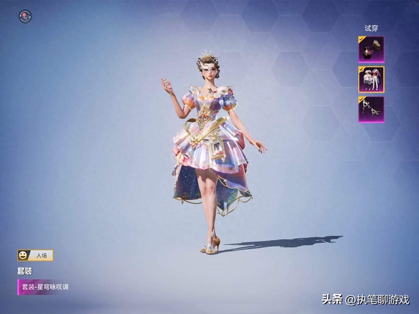 接下來登場的是配角之一的“星淵小夜曲”,看到它的第一眼,天哥就覺得完全可以用“賞心悅目”來形容,無論是禮服的版型還是裙子的長短,都可以說是恰到好處,再加上白色的高跟鞋,給人一種“又欲又純”的視覺感受。