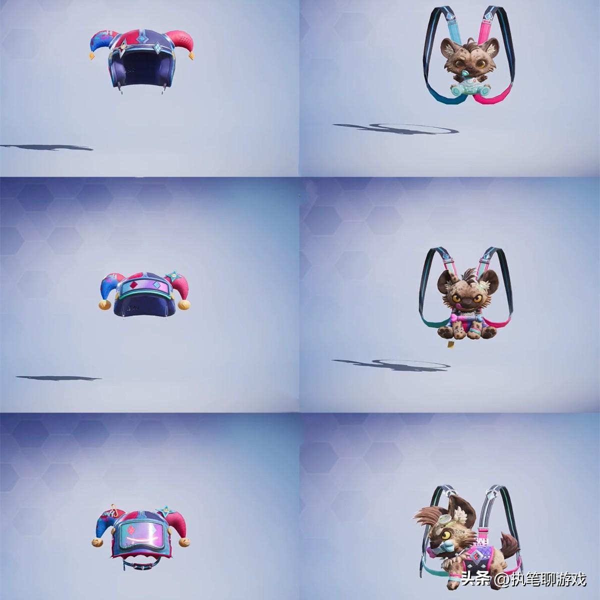 但是出現在“雙重狂想”裏的頭盔、揹包,天哥卻覺得全是亮點,以3級頭爲例,“護目鏡”擁有動態特效,可以演繹出小丑的表情,而且還是多個;而揹包則是看起來有些“雜亂”的狗子,反倒是給人一種“抽到機制就是潮”的感覺。