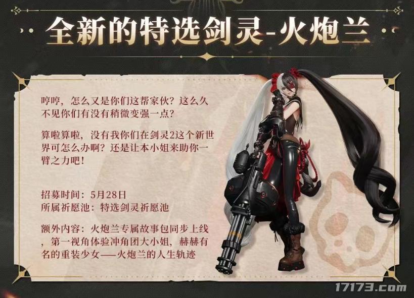 不過,5月28日玩家就可以在特選劍靈祈願池中抽取全新特選劍靈火炮蘭。