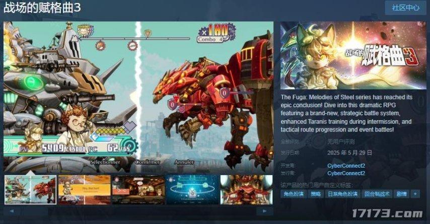 《戰場的賦格曲》系列續作《戰場的賦格曲3》Steam頁面上線,預計於2025年5月29日發售,暫不支持中文。