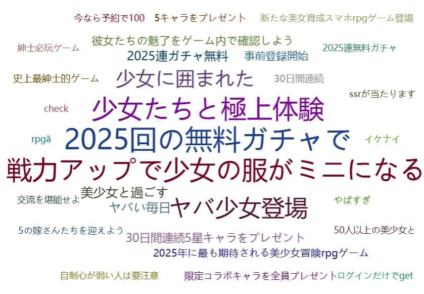 從關鍵詞來看,《完蛋少女》的廣告核心賣點是「2025次免費抽卡」,以及「戰鬥力越高衣服越少」,除此之外主打的關鍵詞大多是圍繞「角色魅力」刺激用戶想象力的詞彙。但不得不說,其中很多素材都存在一定程度的的欺騙性。