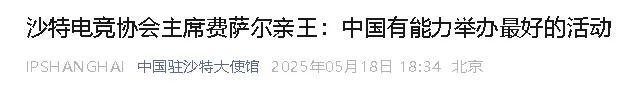 上個星期,葡萄君在上海蔘加活動,見到了一位不常見的人物——沙特費薩爾親王。這位王子殿下和中國遊戲公司的高管坐在一起接受採訪,把中國電競產業的實力猛誇了一頓,還得到了中國駐沙特大使館的轉發。