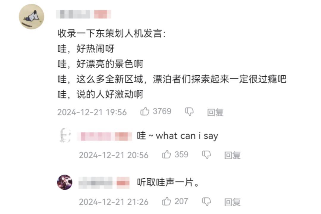 這種思路,一方面讓遊戲美術、技術、產能等投入有了具體目標:驚喜感,引導着產品隨版本迭代不斷進步——前述突破開放世界範式、升級內容表達,也是創造驚喜感的手段。