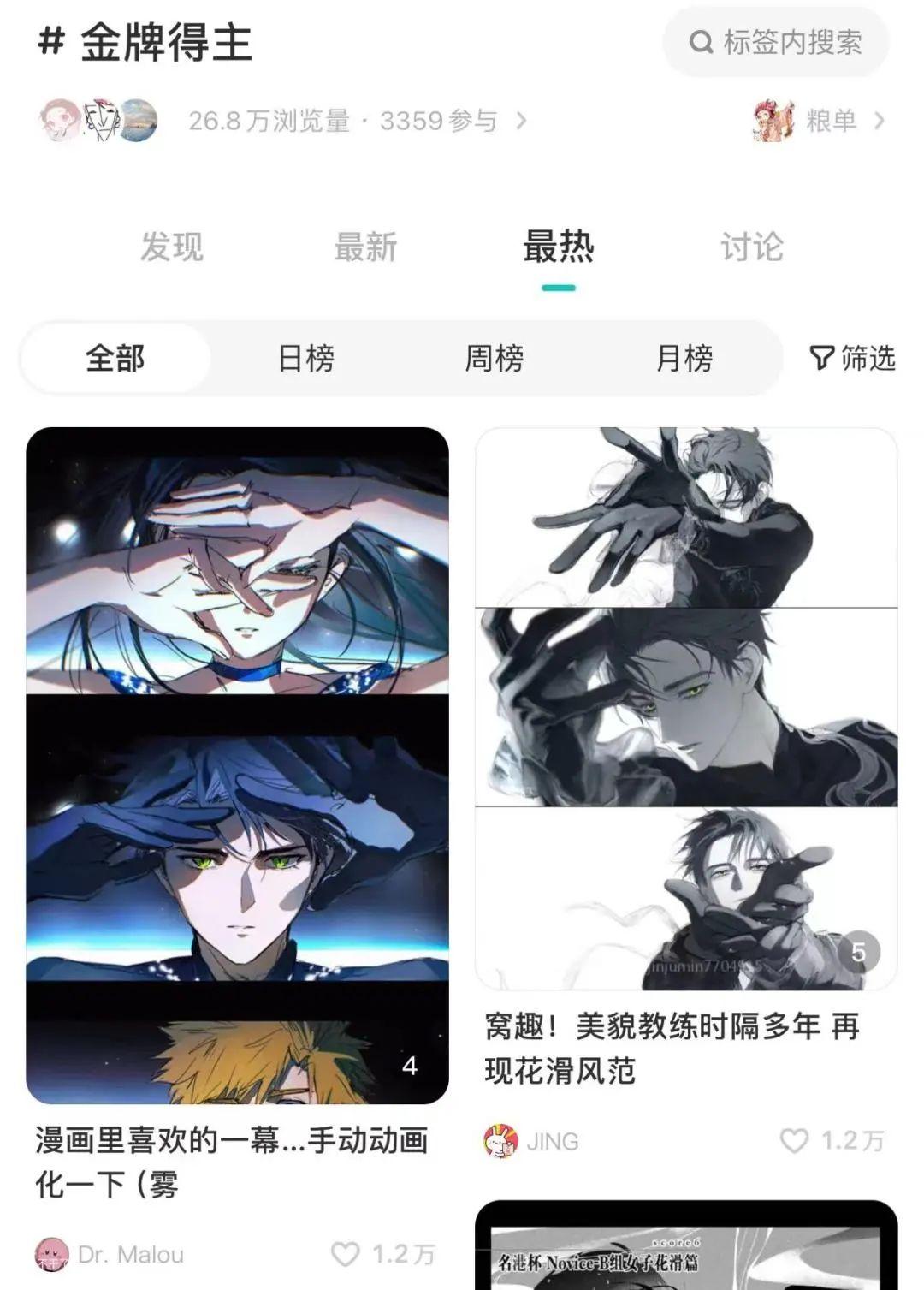 點開熱門榜單,最先映入眼簾的多數情況下都是同人圖,即便是搬運原作漫畫進行解讀的帖子也能位居前列。平日裏,在首頁流轉的,也都是畫手們生產的“盧浮宮級別”的同人圖。