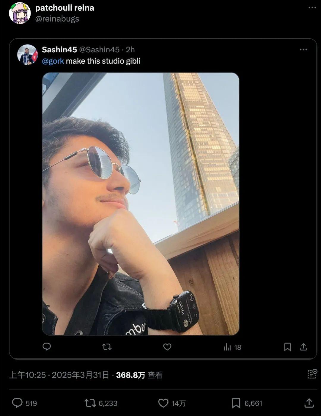 (經典想讓Grok把圖片轉化成吉卜力風格,結果@錯人了)