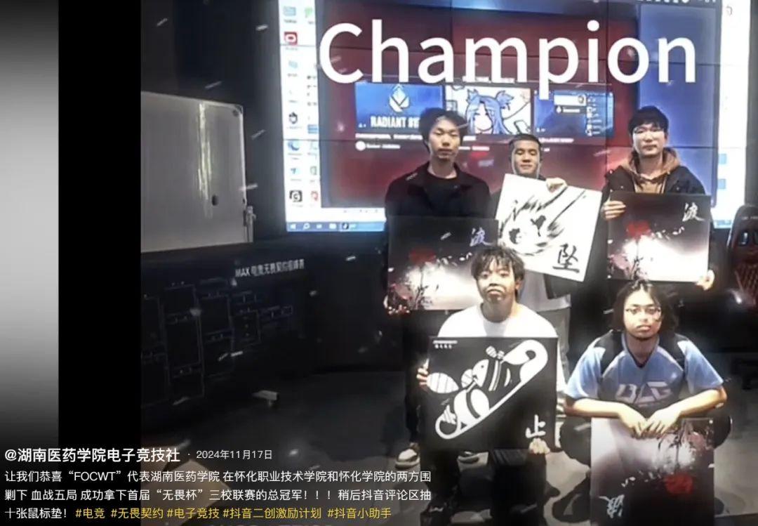 只是當時他沒有料想到,自己會成爲學校電競社的社長,很多事可能也不會發生:他能推進電競社活動從線上走到線下;拉上週邊的高校一起辦區域性賽事;在今年4月和隊員們贏下卓威高校賽的分站冠軍;成爲撬動懷化電競生態的一股微小而重要的力量。