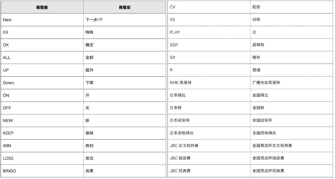 首先是美術資源調整。從公佈信息看,人物美術調整僅限於路人馬娘、協助卡卡面、初始角色的通用服裝,玩家抽取的決勝服和養成角色相關的內容並未調整。