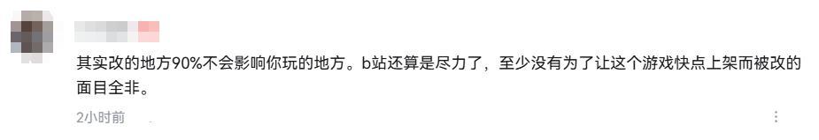 借用一位B友的評價:90%的調整不會影響遊戲體驗,B站也是盡力了,至少沒有爲了讓遊戲儘快上架而改得面目全非。