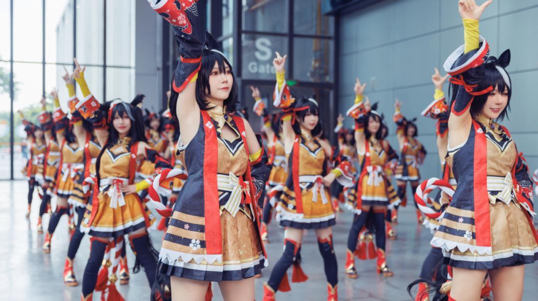 不僅是線上,線下的各種活動中也能看到《閃耀!優俊少女》的身影。在廣州CICF漫展上,超過30位Coser裝扮成遊戲中的角色,在現場整齊劃一地跳起了“馬兒舞”,同時也爲遊戲下架期間提供了一個玩家聚集的平臺。