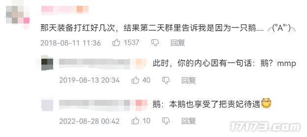 這一問,所有人都愣住了:“我裝備都打紅好幾次,結果你說是因爲一隻鵝?”
