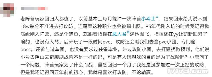 如此功利化打陣營攻防的方式,也讓很多有心迴歸的老玩家倍感不適,覺得現在的陣營對抗沒了當初內味兒。