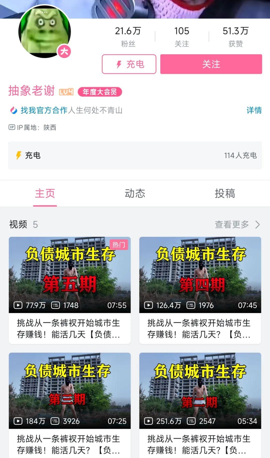 如果說電子遊戲是通過晶體管造夢,那麼,最近由B站UP主“抽象老謝”帶火的“0元城市生存”挑戰,就真的是有人身體力行替你實現幻想了。
