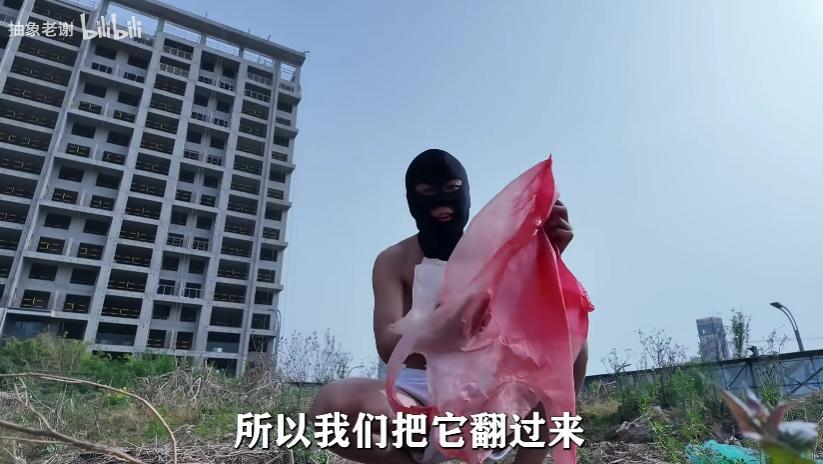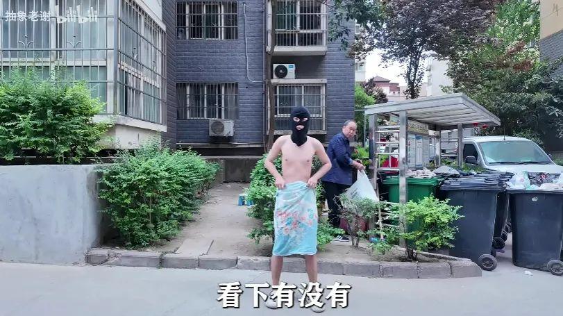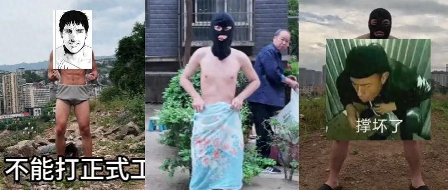 現在,陸續有人開始模仿抽象老謝,有帥哥路線的薄肌版,有抽象路線的肥宅版,以及更多類型。可能過不了多久,這些穿褲衩帶頭套的怪人就能組成一隻男團,合作拍不要笑和隨機蹭飯挑戰。他們可以互相分享工地撿到的內褲和棍子,喫25年前生產的午餐肉罐頭,你別說,還真有種連甯浩和昆汀都拍不出的黑色幽默。