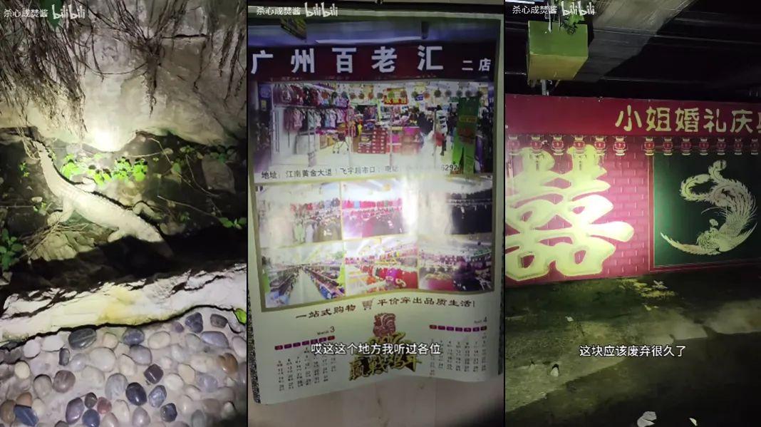 有時候,殺醬會闖入一些隱藏副本。他曾在深夜進入一棟廢棄商場,像是誤入了某個怪核藝術的場景。各種破敗、不和諧的元素肆無忌憚散落在地上,黑暗的場景中突然出現鮮紅的婚慶牌匾;商場的一角有隻鱷魚模型孤零零地趴在地上;蠟筆畫、玩具、卡通角色,被扭曲置於詭異的兒童樂園,有種既熟悉又詭異的超現實氛圍,像一場醒着的噩夢。