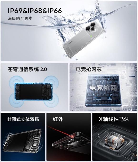 旗艦體驗方面,其支持IP69+IP68+IP66滿級防水,可短時抵抗高壓和高溫水流,讓手機無懼生活中的各種意外。另外,雙頻GPS+四頻北斗、X軸線性馬達、Hi-Res立體雙揚聲器、360° NFC、紅外遙控等實用配置,細節體驗全方面看齊高端。