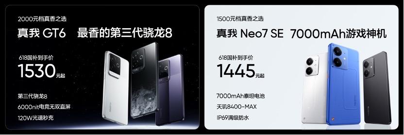 此次新品發售正值真我真香618活動,期間購買真我產品至高享1000元補貼,還有24期免息、超高以舊換新補貼等福利,包括真我GT7 Pro、真我GT7、真我GT6、真我Neo7 SE等真香機型,都將提供優惠。
