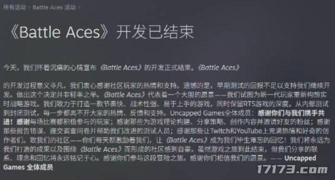 Uncapped Games官方日前宣佈,由他們出品的快節奏RTS遊戲《Battle Aces》(中文譯名《星戰王牌》)將取消開發。