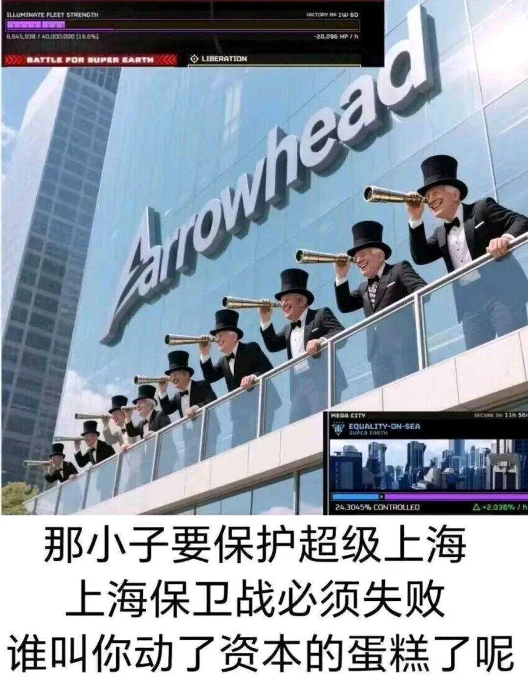 箭頭是怎麼做的呢,他們表現得就像個撒潑打滾的雌小鬼,或者在背後愚弄玩家的大反派。當超級上海的抵抗進度到99.9783%的時候,進度條停滯了,怎麼打都無法推進。此事在拼多多里亦有記載。
