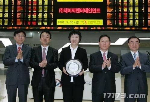 2008年公司上市時的白一勝(左二)和金陽辛(中)