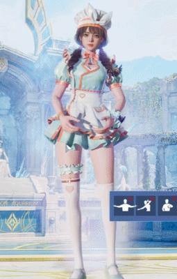 設計師深諳“反差萌”精髓:明明穿着日式女僕廚師裝,右手卻扛槍上肩,左手深插圍裙口袋。現實中顯得違和,遊戲中卻意外的契合。尤其是小柔的兩款廚娘服,一款以白+橘+薄荷綠的清新款,一款是白+紅+粉紅的洛麗塔款,都讓玩家在充滿硝煙的戰場上如沐春風。