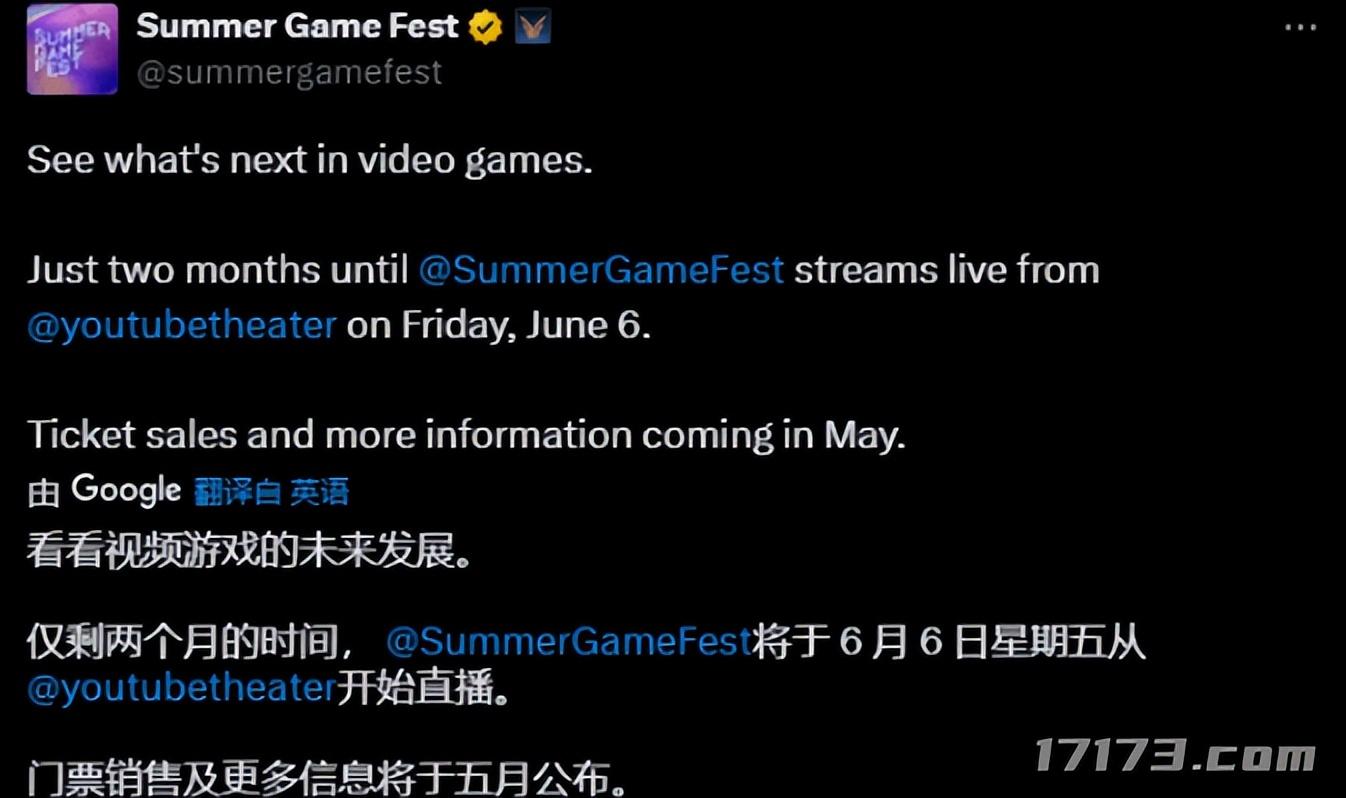 夏日遊戲節將於6月7日早上5點(北京時間)準時舉辦。