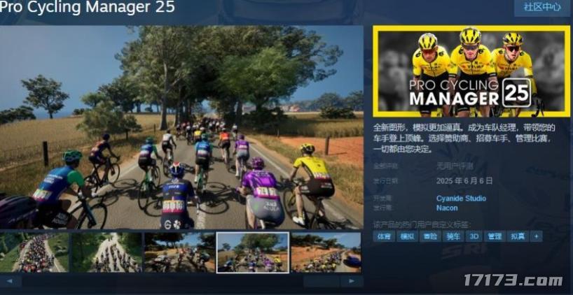 《職業自行車隊經理2025》Steam頁面公佈,遊戲不支持中文,預計於6月6日發售。