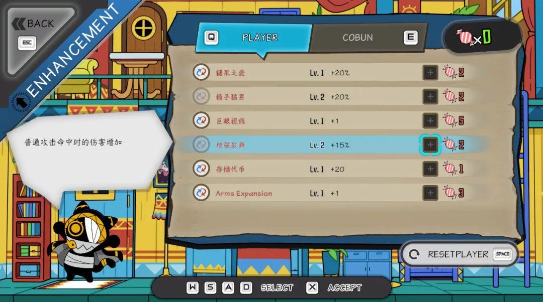 說到局外成長,《Ratatan》的一大標籤便是肉鴿遊戲,遊戲的局內外設計確實有着強烈的“哈迪斯”感。在主城,玩家可以兌換資源,做裝備,強化屬性;出發後,戰鬥流程由一個個房間組成,在進入房間前,玩家先選擇獎勵,清完敵人後就可以獲取。