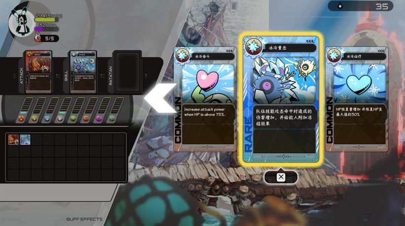 但從簡短的試玩版,遊戲目前提供的肉鴿體驗並不深度。比如,選擇屬性卡牌的效果,主要以普通、技能的特效爲主,且沒什麼聯動效果;局內商店出售的道具,也都是常規的回覆血量、增加跟班數量等,玩兩三把基本就全見過了。