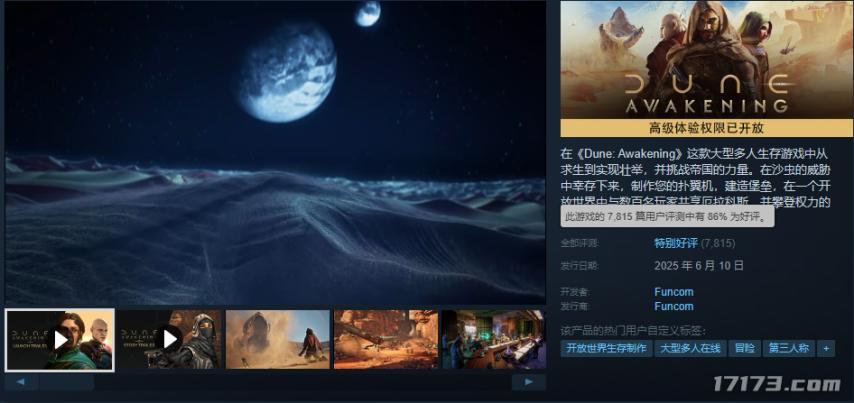 以目前的體驗版來看,《沙丘:覺醒》的評價還是相當不錯的,足足有86%的特別好評。