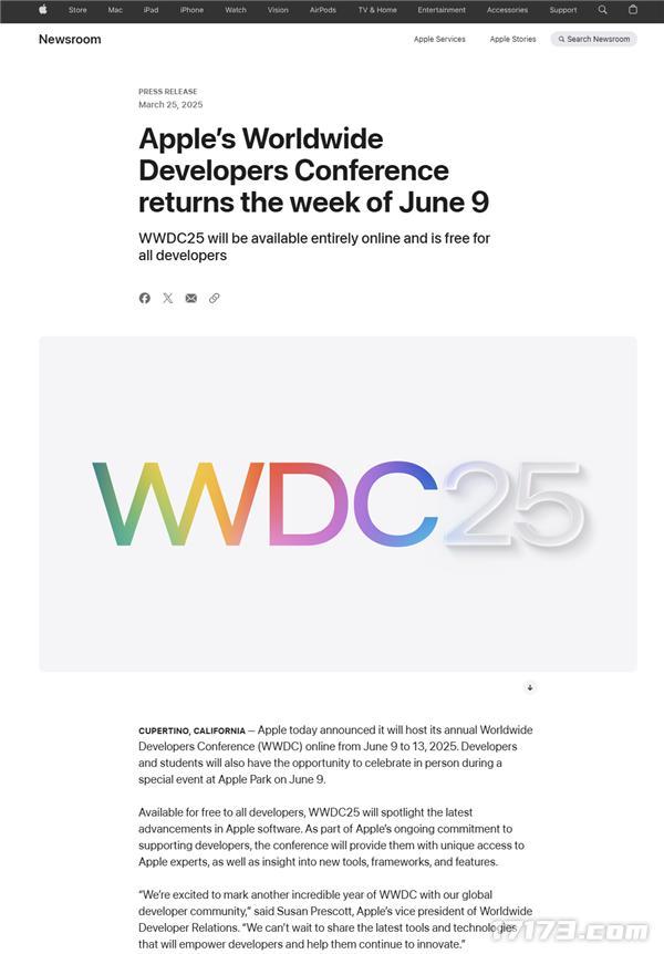 劃重點:蘋果官宣“WWDC25”6月9日拉開帷幕