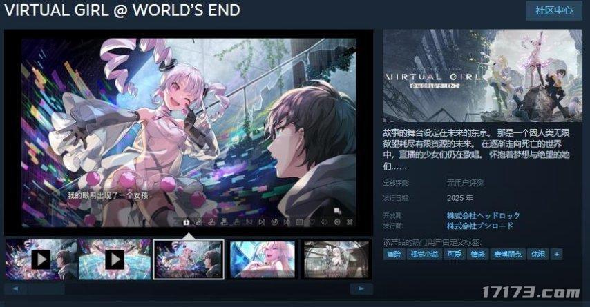 終末系視覺小說遊戲《VIRTUAL GIRL @ WORLD’S END》Steam頁面上線,預定2025年6月12日發售,該作支持簡繁體中文。