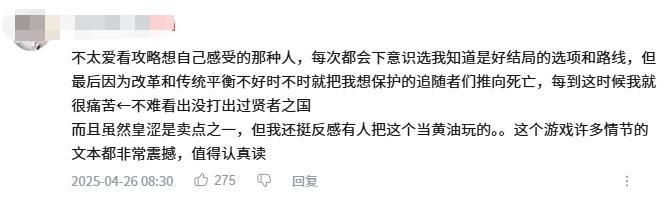 這種在道德邊緣反覆試探、最終迴歸人性思考的體驗,正是《蘇丹的遊戲》能夠真正打動玩家,並獲得高度評價的關鍵。