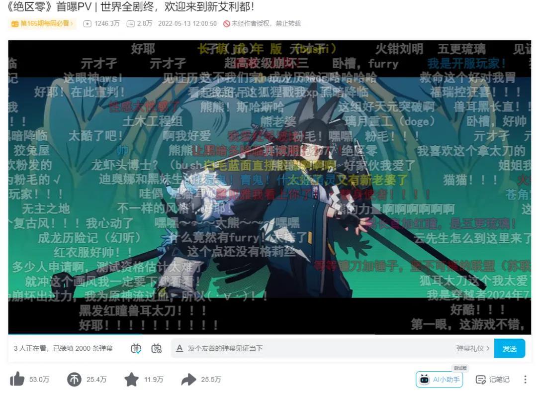 想想《絕區零》出來之前,市場期待度有爆炸?美術風格、內容調性、戰鬥設計……首曝PV中出現的每個部分都讓人看得興奮,1246萬的播放量放在今天,都是很多人氣新品難以望其項背的存在。