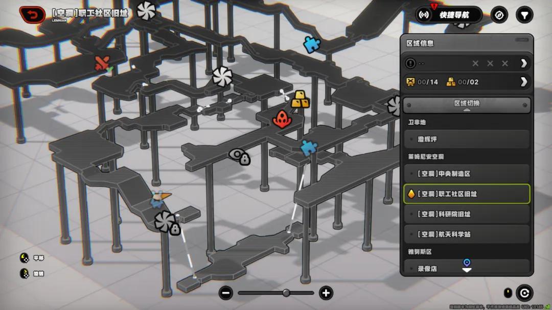 三是在具體的地圖中,遊戲新增了關卡的3D白模界面,收集物和重要交互點都有明確標註。