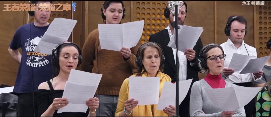 這種規格和投入甚至體現在了聲音設計中。爲追求影視級聽覺體驗,《王者榮耀》邀請了音效師祝巖峯(代表作《流浪地球》系列)、影視音樂製作人郭好爲(代表作《白蛇》系列)等衆多藝術家參制——最終動畫不僅呈現了高規格的創作(如20人的混聲合唱團爲動畫OP伴唱),也實現了對遊戲元素的自然融入(如動畫狂鐵登場的BGM,來自遊戲原聲的經典重製)。