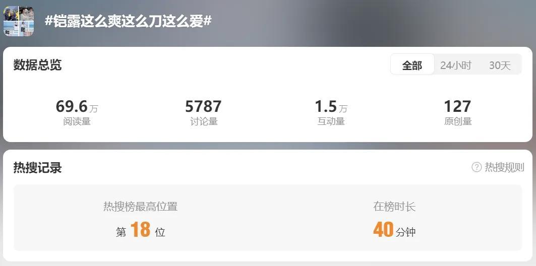 有趣的是,在動畫尚未播出時,#卡琳娜cos鎧太權威了#、#鎧露這麼爽這麼刀這麼愛#、#鎧以後都不許開大#等多個話題就頻繁登上微博熱搜——截至目前,動畫相關話題的全網曝光量超過22億次,幾乎橫掃各個平臺的熱搜熱門榜。