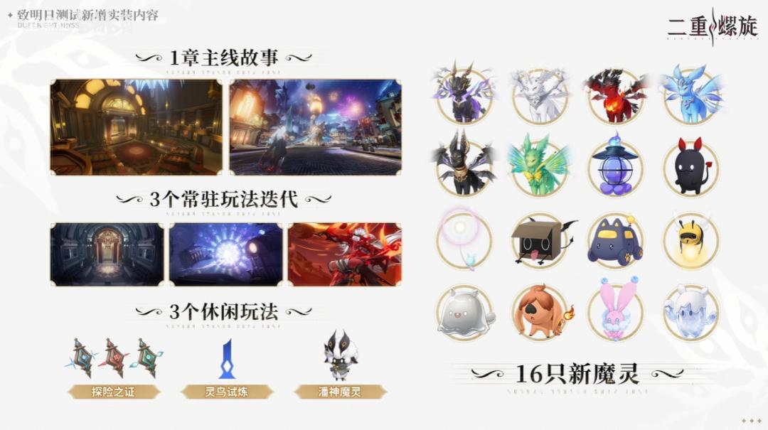 在3個月的時間裏,他們的產能可以說誇張。這次三測不僅有了雙主線,雙主角,還一口氣放出了7位全新角色,2種新武器類型,11把新武器,1章主線故事,3個常駐玩法,3個休閒玩法,以及16只新寵物。